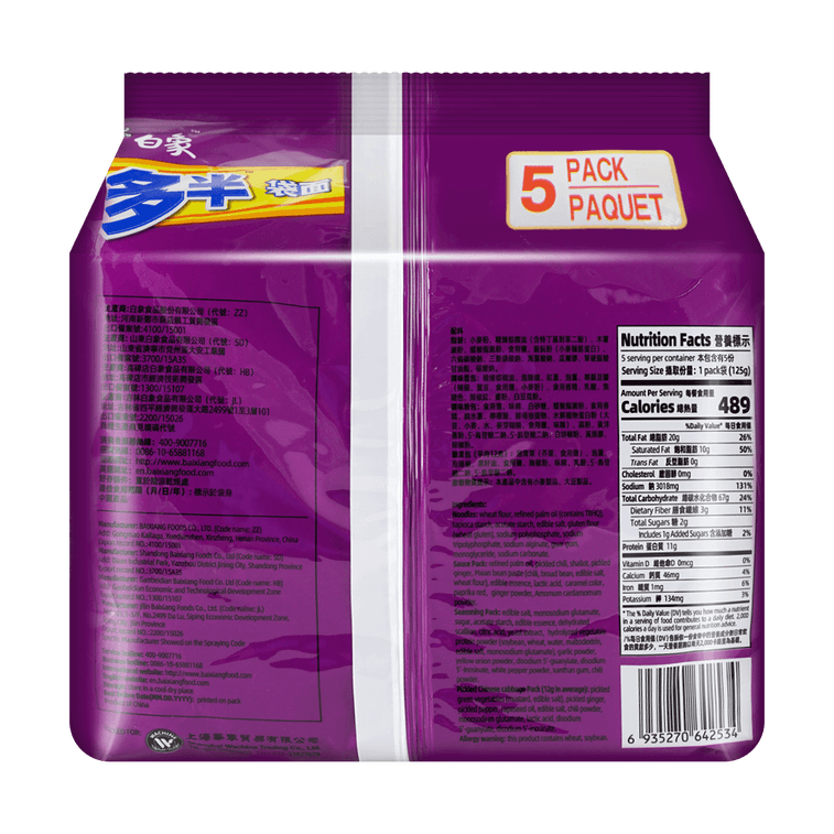 Baixiang Dabanbao Laotan Pickled Cabbage Beef Noodles 5-pack 125g*5